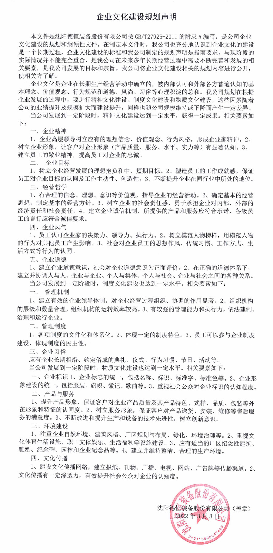 企业文化建设规划声明