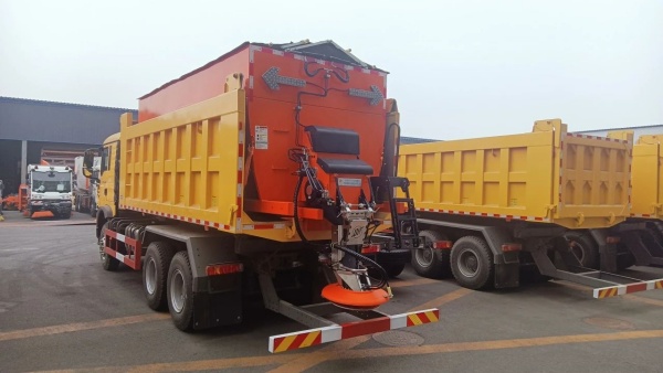 预湿撒布功能:在固体融雪剂播撒的同时喷淋盐溶液,起到打湿融雪剂、防止飞溅、加速融雪剂溶解的作用,节省使用成本;