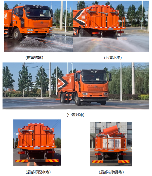 近些年,随着城市精细化程度的加深,环卫部门对于城市清扫质量的要求也是越来越高。想必大家也都见过雨天洒水车进行洒水冲洗作业的场景,是因为执行过于呆板?还是走形式完成任务?相信大家心中都有不小的疑惑。 其实,这是在“借雨发力”开展“洗城”行动! 洒水车雨天作业,其实是冲洗路面污垢,即趁着下雨地面湿润时,利用高压水冲洗路面比较脏的地方。平时洒水作业,路面细缝泥土、路面油污等很难清除,但是经过雨水湿润浸泡会变软变松,附着力大幅减弱,这时候采用洒水车进行高压冲洗,会收到事半功倍的效果。 对于洒水车雨天作业场景,经过各地区的实践以及理论灌输,想必大家已经见怪不怪了,但是你们见过洒水车还可以雪天作业嘛?为提升环卫设备的使用率,德恒装备特意研发一款四季通用型洒水车,在冬季可上装除雪滚刷和除雪铲,用于除雪作业,很好的解决了洒水车冬季闲置问题。 德恒牌LDH5181GSSCA四季通用型洒水车 该款洒水车以升级款解放J6L底盘为载体,配有9.3m³罐体,前置鸭嘴喷水,中置对冲,后置水坨洒水及平台水炮(可360° 旋转,可调成柱状最大射程25m,也可调成雾状最大射程15m,可调成:直冲状、大雨、中雨、小雨、毛毛雨),还可以选装雾炮装置便于喷雾降尘。 该车最大亮点便是:采用中国一汽解放J6L底盘,车辆匹配全功率取力器,后部预留液压系统安装空间,冬季可安装滚刷和雪铲进行除雪作业,大大提高了底盘的使用率,真正的实现四季通用。 滚刷直径(mm): 813; 滚刷宽度(mm): 3050; 工作转速(r/min): 300/400; 定量/变量泵液压系统可选; 雪铲宽度(mm): 3050; 雪铲高度(mm): 913; 避障高度(mm): 260; 避障方式:压缩弹簧避障;