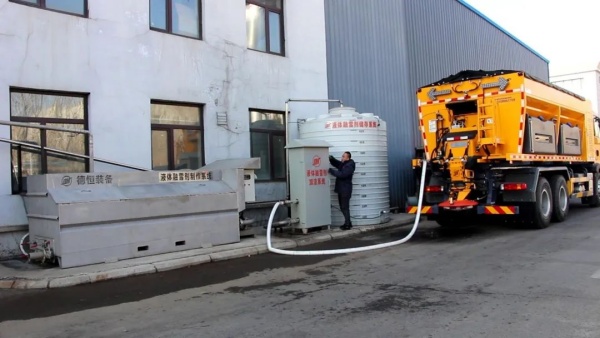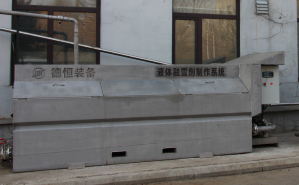 随着人们环保意识的增强,冬季绿色除雪作业模式越来越受到人们重视,融雪剂使用要求越来越严格,传统的固体融雪剂撒布作业已满足不了对环境保护的要求,取而代之的是更加科学环保的液体融雪剂撒布作业方式。 为解决上述问题,满足客户的不同需求,我公司特研制了盐溶液自动生成站,可根据客户的具体情况进行定制,满足客户个性化需求。 产品简介 该盐溶液自动生成站是一套可以全自动、高精度、持续性生成所需浓度的液体融雪剂的设备,具有占地面积小、选址灵活、初期投入成本低、操作智能化简单化等特点。 生成站主要包含自动生成机、储液罐、控制系统及进出水管路四大部分组成。其中,自动生成机的数量与储液罐的数量可根据客户要求的制液速度、储液容积、设备数量等进行灵活配置,储液罐单个容积有10m³、20m³和30m³三种可供选择。